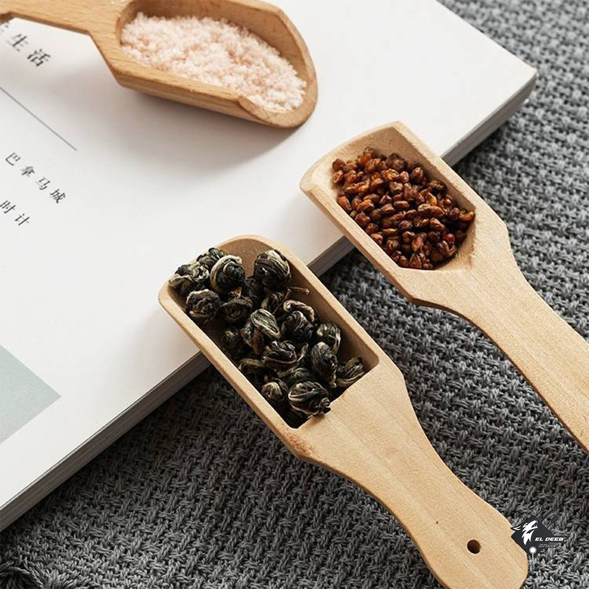 طقم معالق شكل جاروف خشبى صغير معلقة توابل 6 قطع حجم 8*3 سم